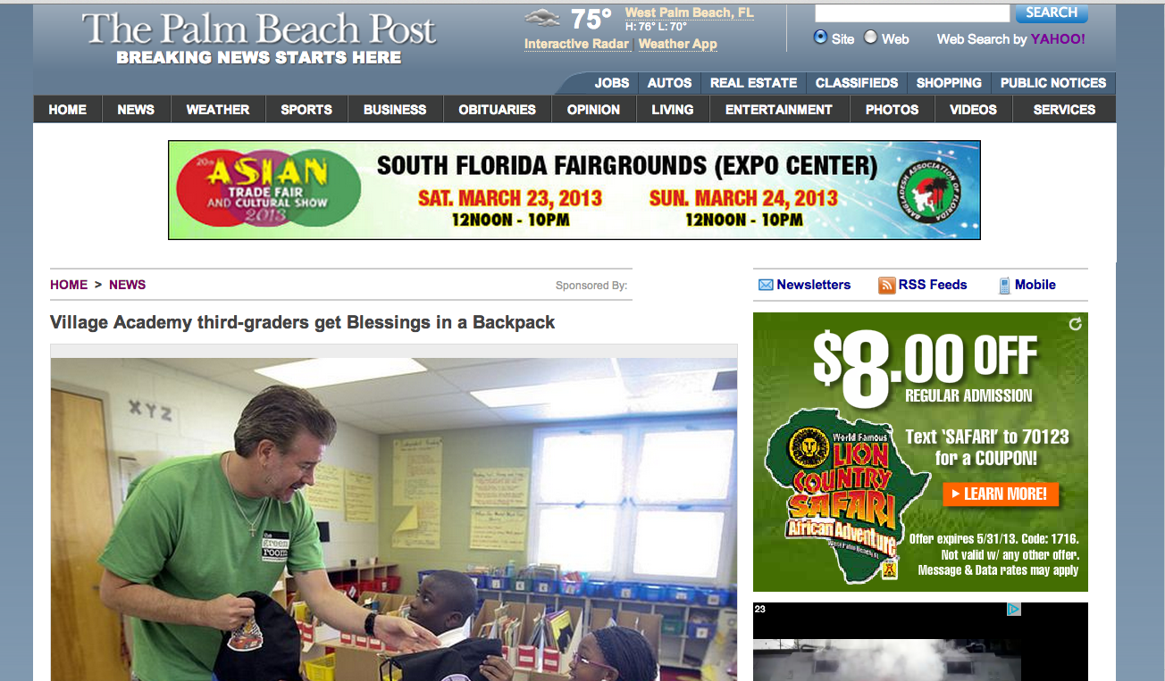 Balance Marketing and PR Blessings in a Backpack Date: March 22, 2013Author: News Gregory James Blount of Sound Tree Entertainment hands out food to kids who can’t afford it each Friday as part of Blessings in a Backpack Here is a great story of charity: Share this: Click to share on LinkedIn (Opens in new window) LinkedIn Click to share on Pinterest (Opens in new window) Pinterest Click to share on Tumblr (Opens in new window) Tumblr Click to share on X (Opens in new window) X Click to share on Facebook (Opens in new window) Facebook Like Loading... Related