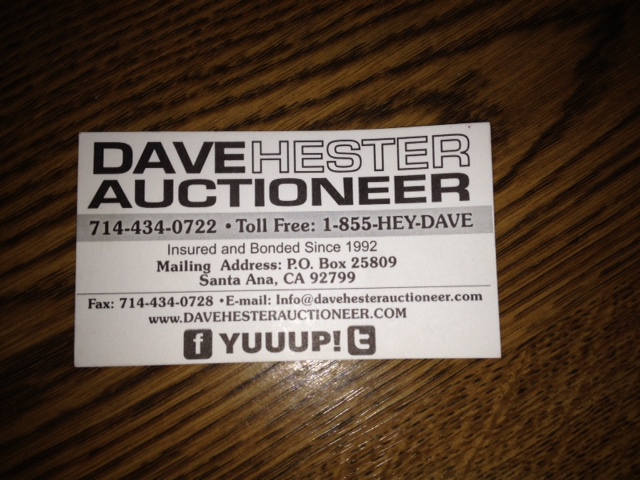 Hester said he started his own auction house, Dave Hester Auctioneer, located in Santa Ana.